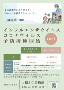 10/1よりインフルエンザワクチンおよび新型コロナワクチンの接種を開始いたしました。